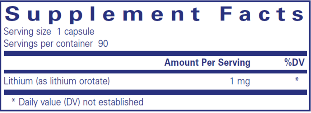 {"id":9104288612604,"title":"PURE ENCAPSULATIONS LITHIUM 1MG 90 CAPSULES","handle":"fh-pro-fertility-multivitamin-for-women-copy","description":"\u003cp\u003e\u003cspan\u003eOffers the essential trace element lithium to support healthy mental function, including mood, emotion, memory and behavior‡\u003c\/span\u003e\u003cbr\u003e\u003c\/p\u003e\n\u003cp\u003e\u003cstrong\u003eSuggested Use:\u003cspan\u003e \u003c\/span\u003e\u003c\/strong\u003e1 capsule daily, with a meal, or as directed by a health professional.\u003cbr\u003e\u003cbr\u003e\u003cstrong\u003eServing Size:\u003c\/strong\u003e\u003cspan\u003e \u003c\/span\u003e1 capsule\u003cbr\u003e\u003cstrong\u003eAmount Per Serving\u003c\/strong\u003e\u003cbr\u003e\u003cstrong\u003eLithium\u003c\/strong\u003e\u003cspan\u003e \u003c\/span\u003e(as lithium orotate) … 1mg\u003cbr\u003e\u003cbr\u003e\u003cstrong\u003eOther Ingredients:\u003c\/strong\u003e\u003cspan\u003e \u003c\/span\u003ehypoallergenic plant fiber (cellulose), vegetarian capsule (cellulose, water)\u003c\/p\u003e\n\u003cp\u003e\u003cbr\u003e\u003cspan\u003eNot to be taken by pregnant or lactating women. Consult your health professional before using this product. Not to be taken in conjunction with antidepressants unless advised by a health professional. Individuals with bipolar disorder or depression must be monitored closely by a health professional if taking this supplement. It is recommended that individuals taking this supplement have lithium levels and kidney function monitored regularly. Do not exceed the dose recommended by your health professional.\u003c\/span\u003e\u003cbr\u003e\u003c\/p\u003e","published_at":"2025-09-24T17:30:54-04:00","created_at":"2025-09-24T17:30:54-04:00","vendor":"Fullscript","type":"","tags":["Dietary Restrictions_Dairy Free","Dietary Restrictions_Gluten Free","Dietary Restrictions_Nut Free","Dietary Restrictions_Paleo","Dietary Restrictions_Soy Free","Dietary Restrictions_Vegan","Price_$0 to $25"],"price":1699,"price_min":1699,"price_max":9200,"available":true,"price_varies":true,"compare_at_price":null,"compare_at_price_min":0,"compare_at_price_max":0,"compare_at_price_varies":false,"variants":[{"id":48298600005884,"title":"Single Unit","option1":"Single Unit","option2":null,"option3":null,"sku":"6543","requires_shipping":true,"taxable":true,"featured_image":null,"available":true,"name":"PURE ENCAPSULATIONS LITHIUM 1MG 90 CAPSULES - Single Unit","public_title":"Single Unit","options":["Single Unit"],"price":1699,"weight":0,"compare_at_price":null,"inventory_management":"shopify","barcode":"766298022901","requires_selling_plan":false,"selling_plan_allocations":[{"price_adjustments":[{"position":1,"price":1614}],"price":1614,"compare_at_price":1699,"per_delivery_price":1614,"selling_plan_id":5091033340,"selling_plan_group_id":"5932612a299fdbcf90454d75cd44c2c3fb5726b3"},{"price_adjustments":[{"position":1,"price":1614}],"price":1614,"compare_at_price":1699,"per_delivery_price":1614,"selling_plan_id":5091098876,"selling_plan_group_id":"2e26c9c13ed68026e86060667b90391f07cc0bff"},{"price_adjustments":[{"position":1,"price":1614}],"price":1614,"compare_at_price":1699,"per_delivery_price":1614,"selling_plan_id":5091066108,"selling_plan_group_id":"699d3d748cc52413eab2420d291604b2288a92dc"}]},{"id":48298600038652,"title":"3 Pack","option1":"3 Pack","option2":null,"option3":null,"sku":null,"requires_shipping":true,"taxable":true,"featured_image":null,"available":true,"name":"PURE ENCAPSULATIONS LITHIUM 1MG 90 CAPSULES - 3 Pack","public_title":"3 Pack","options":["3 Pack"],"price":4842,"weight":0,"compare_at_price":null,"inventory_management":null,"barcode":"","requires_selling_plan":false,"selling_plan_allocations":[{"price_adjustments":[{"position":1,"price":4600}],"price":4600,"compare_at_price":4842,"per_delivery_price":4600,"selling_plan_id":5091033340,"selling_plan_group_id":"5932612a299fdbcf90454d75cd44c2c3fb5726b3"},{"price_adjustments":[{"position":1,"price":4600}],"price":4600,"compare_at_price":4842,"per_delivery_price":4600,"selling_plan_id":5091098876,"selling_plan_group_id":"2e26c9c13ed68026e86060667b90391f07cc0bff"},{"price_adjustments":[{"position":1,"price":4600}],"price":4600,"compare_at_price":4842,"per_delivery_price":4600,"selling_plan_id":5091066108,"selling_plan_group_id":"699d3d748cc52413eab2420d291604b2288a92dc"}]},{"id":48298600071420,"title":"6 Pack","option1":"6 Pack","option2":null,"option3":null,"sku":null,"requires_shipping":true,"taxable":true,"featured_image":null,"available":true,"name":"PURE ENCAPSULATIONS LITHIUM 1MG 90 CAPSULES - 6 Pack","public_title":"6 Pack","options":["6 Pack"],"price":9200,"weight":0,"compare_at_price":null,"inventory_management":null,"barcode":"","requires_selling_plan":false,"selling_plan_allocations":[{"price_adjustments":[{"position":1,"price":8740}],"price":8740,"compare_at_price":9200,"per_delivery_price":8740,"selling_plan_id":5091033340,"selling_plan_group_id":"5932612a299fdbcf90454d75cd44c2c3fb5726b3"},{"price_adjustments":[{"position":1,"price":8740}],"price":8740,"compare_at_price":9200,"per_delivery_price":8740,"selling_plan_id":5091098876,"selling_plan_group_id":"2e26c9c13ed68026e86060667b90391f07cc0bff"},{"price_adjustments":[{"position":1,"price":8740}],"price":8740,"compare_at_price":9200,"per_delivery_price":8740,"selling_plan_id":5091066108,"selling_plan_group_id":"699d3d748cc52413eab2420d291604b2288a92dc"}]}],"images":["\/\/www.progressivenutracare.com\/cdn\/shop\/files\/LITHIUM1MG90CAPSULESFRONT.png?v=1764954108","\/\/www.progressivenutracare.com\/cdn\/shop\/files\/LITHIUM_1MG_90_CAPSULES_PANEL.png?v=1764954126"],"featured_image":"\/\/www.progressivenutracare.com\/cdn\/shop\/files\/LITHIUM1MG90CAPSULESFRONT.png?v=1764954108","options":["Packs"],"media":[{"alt":null,"id":38105281298684,"position":1,"preview_image":{"aspect_ratio":1.0,"height":1000,"width":1000,"src":"\/\/www.progressivenutracare.com\/cdn\/shop\/files\/LITHIUM1MG90CAPSULESFRONT.png?v=1764954108"},"aspect_r